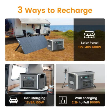 1000W RV Portable Power Station Solar Generator 110V-240V Volt AC Energy Storage Supply Outdoor Camping Campervan Travel Drone