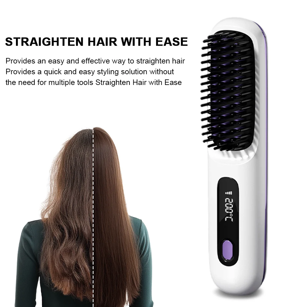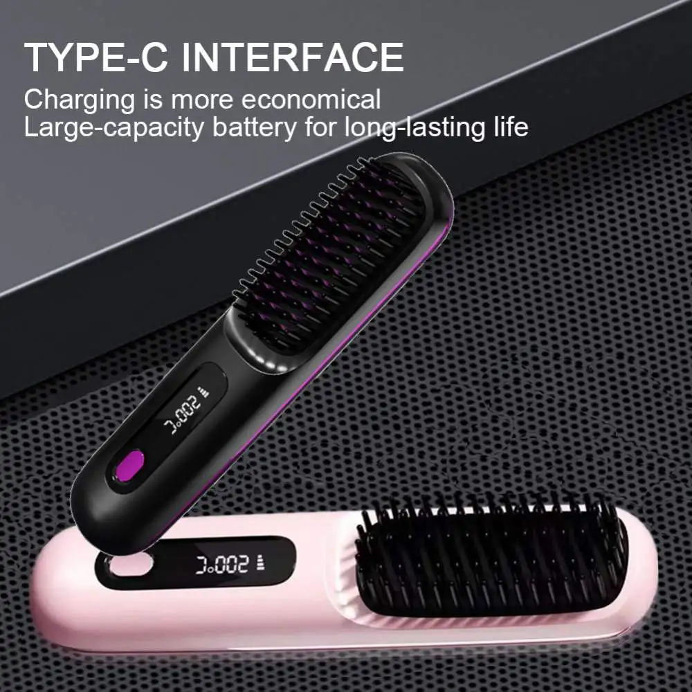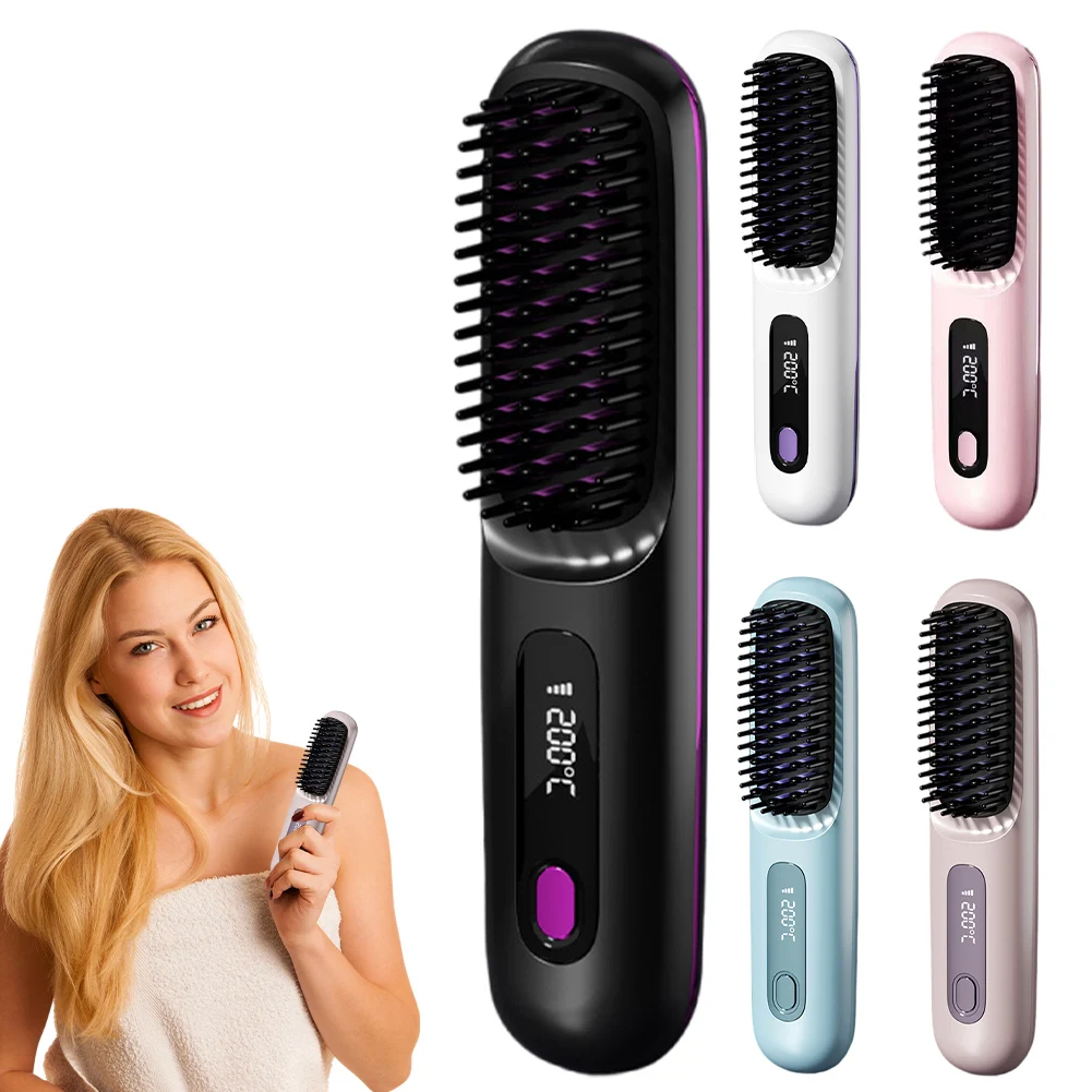 Electric LCD USB Ceramic Heating Straight Hair Comb Wireless Portable Negative Ion Styling Tool Rechargeable Straightening Brush