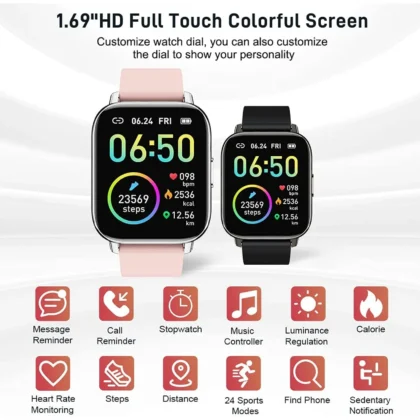 Jxrev Smart Watch, Fitness Tracker Watch for Men Women, 1.69” Touch Smartwatch Fitness Watch with Ultra Thin Watch.