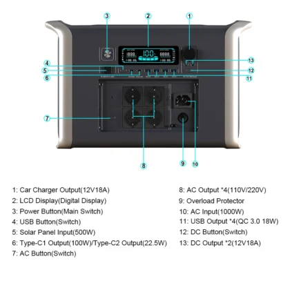 Interfaces Available: 2*AC,2*DC,1*Cigarette lighter,4*USB-A ,2*Type-C