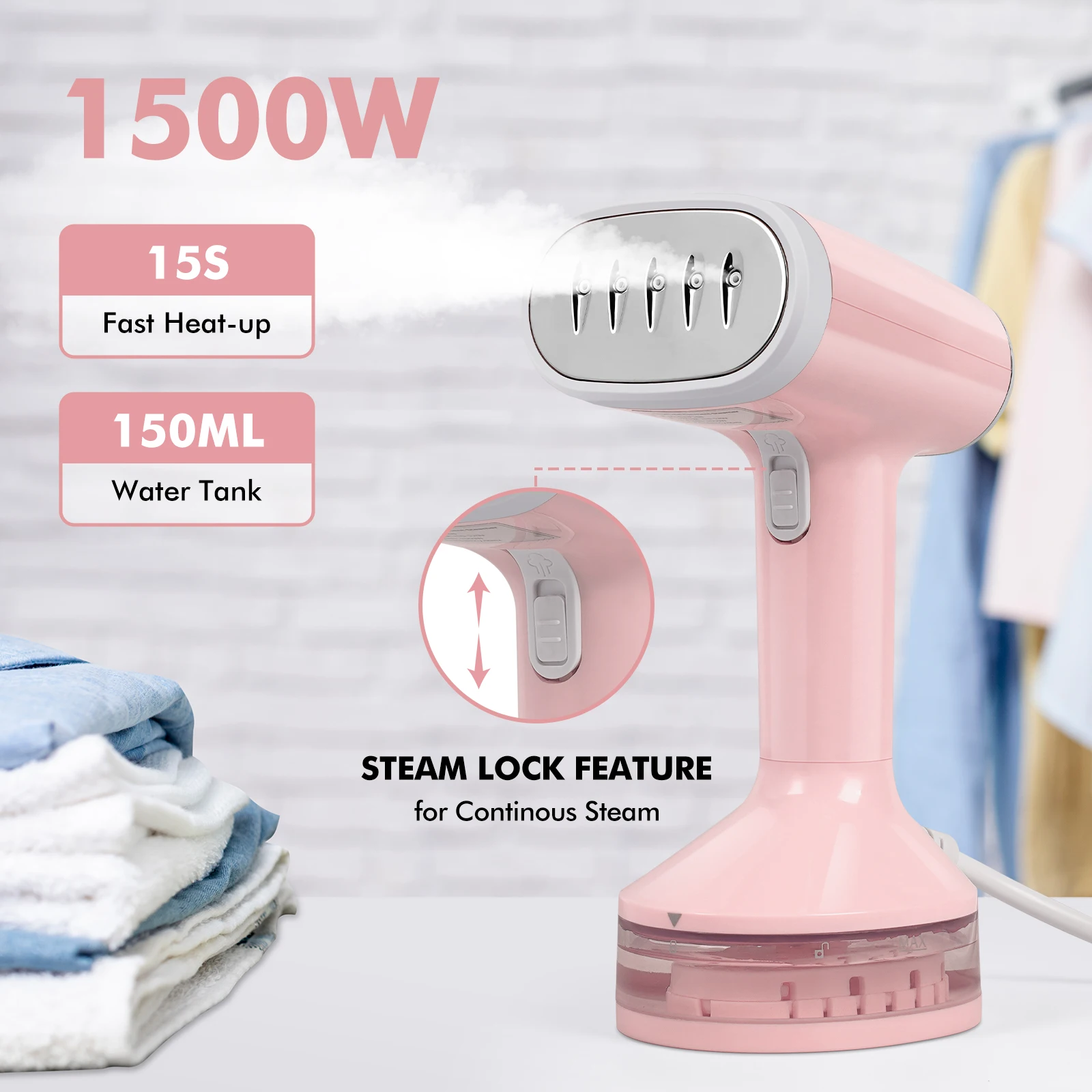 1500W Powerful Steam Output: VAVSEA steamer for clothes with 1500W powerful steam, 25g/min continuous steam output, steam can penetrate deep into the fabric area, instantly smooth wrinkles on clothes, and remove odors